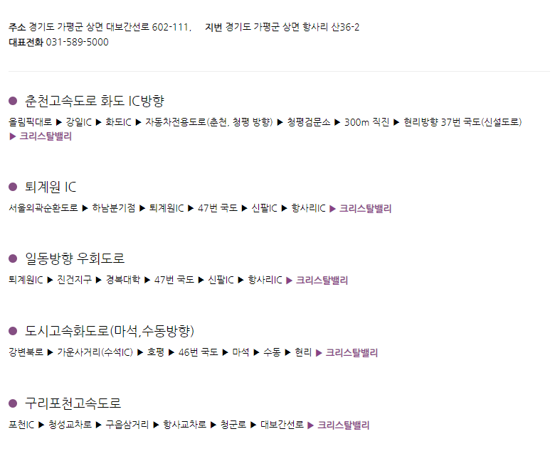 | 소재지 | 경기도 가평군 상면 대보간선로 602-111 |
