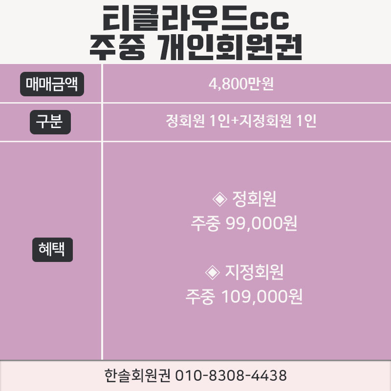 티클라우드cc의 회원권은 주중 개인회원권으로