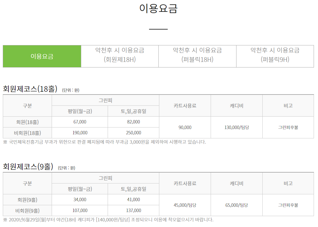 태광cc의 회원권은 개인 남자기준 정회원 1인으로