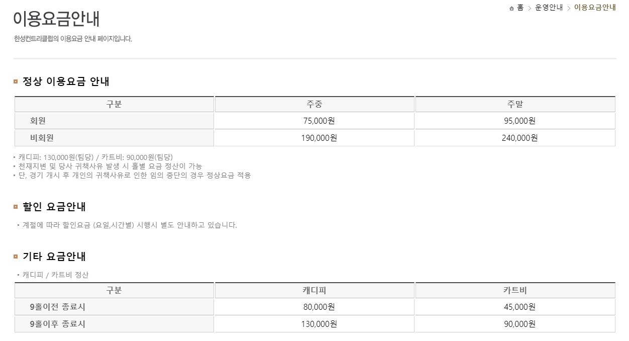 | 캐디/카트 | 캐디 13만원 / 카트 9만원 |