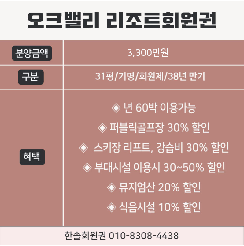 ◆ 오크밸리콘도 회원권 ◆