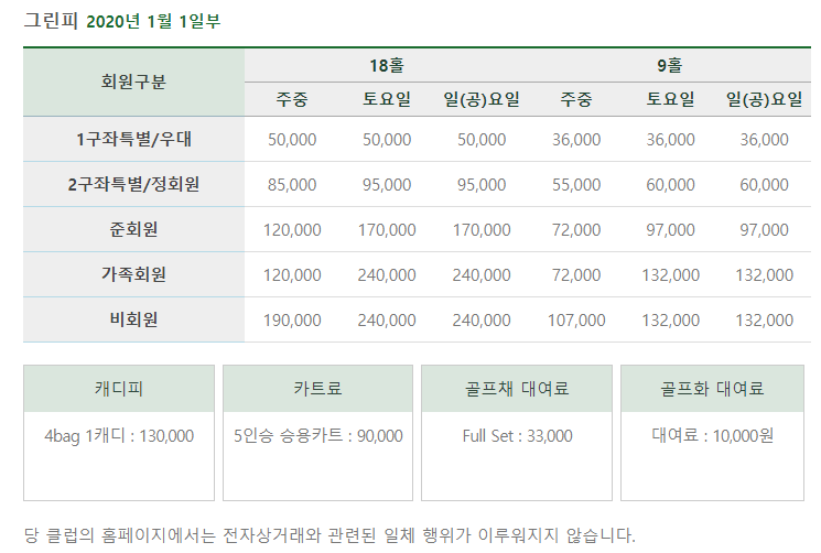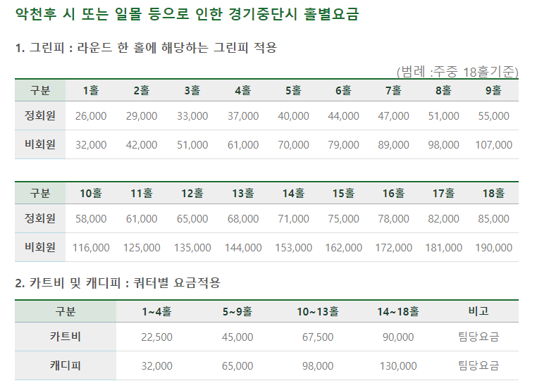 | 캐디시스템 | 1캐디 4백 |