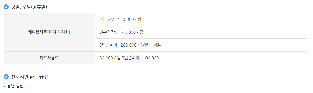 ◈ 그랜드cc 이용요금 안내 ◈