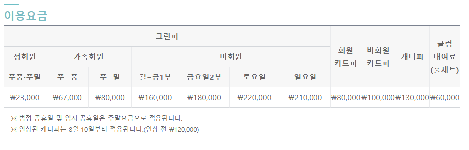 | 부대시설 | 레스토랑, 사우나, 프로샵, 연회장 등등 |