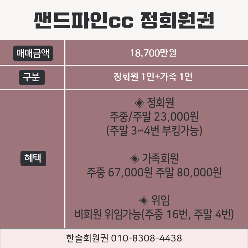 샌드파인cc의 회원권은 일반회원권으로 정회원 1인과 가족회원 1인