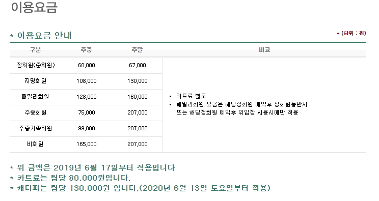 구성되어 있습니다. 회원권마다 가지고 있는 장단점과 혜택이