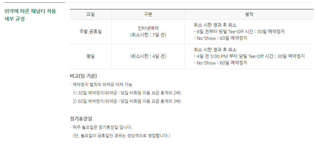 ◈ 우정힐스cc 예약 및 위약 안내 ◈