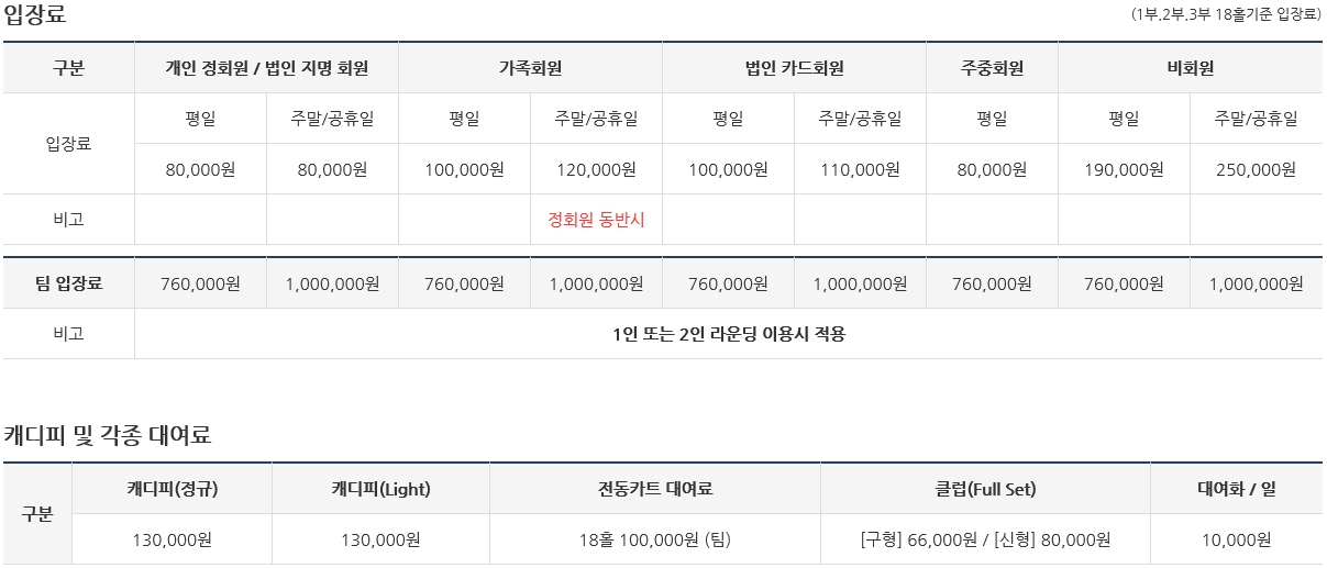 ▣ 중부cc 골프 그린피 및 이용요금 안내 ▣