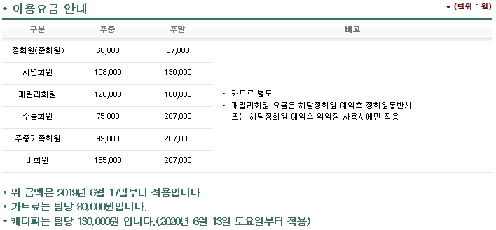 - 그린피 : 주중 75,000원 / 주말 77,000원 (1인)
