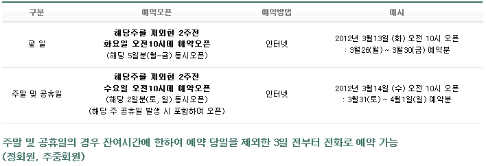- 월 주말2회(잔여부킹) / 주중15회 이용가능