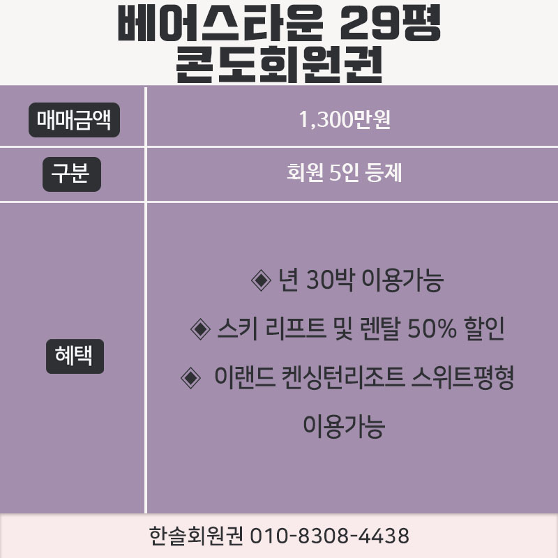 ◈ 베어스타운리조트 콘도회원권 혜택과 정보 안내드립니다. ◈