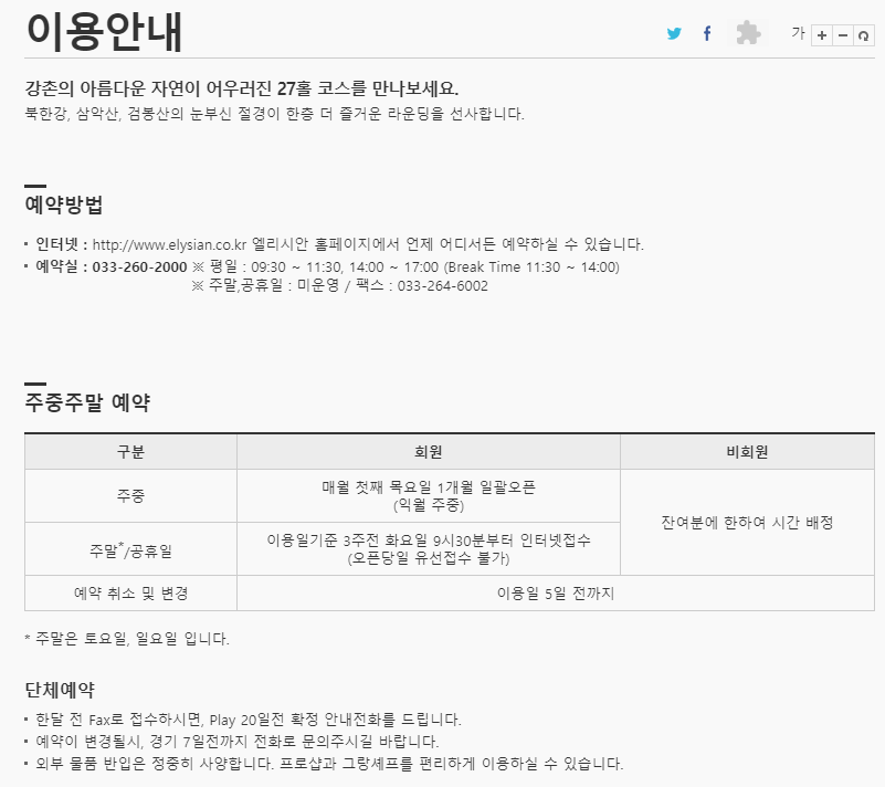 ■ 엘리시안강촌cc 이용 및 예약 안내 ■