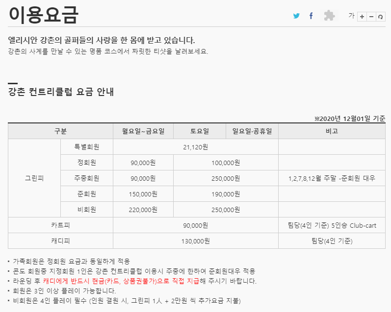 ■ 엘리시안강촌cc 이용요금 안내 ■