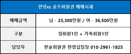 ◀ 한양cc 골프회원권 매매가격 ▶