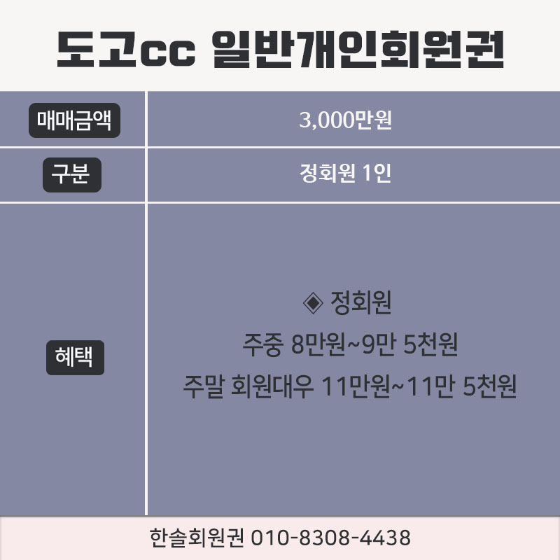 도고cc의 회원권은 일반 개인회원권으로 정회원 1인으로