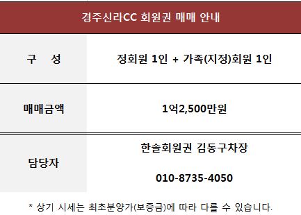 경주신라CC 골프 회원권 매매 안내