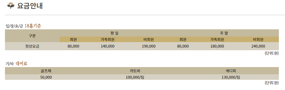 ■ 제일cc 이용요금 안내 ■