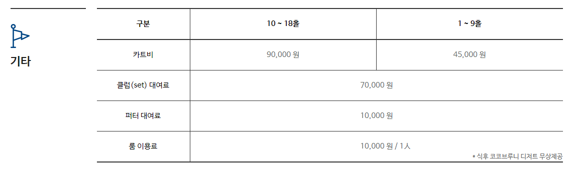 | 캐디시스템 | 1캐디 4백 |