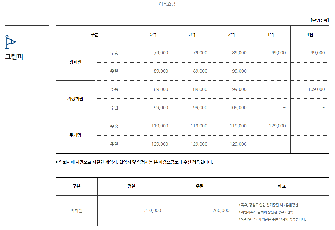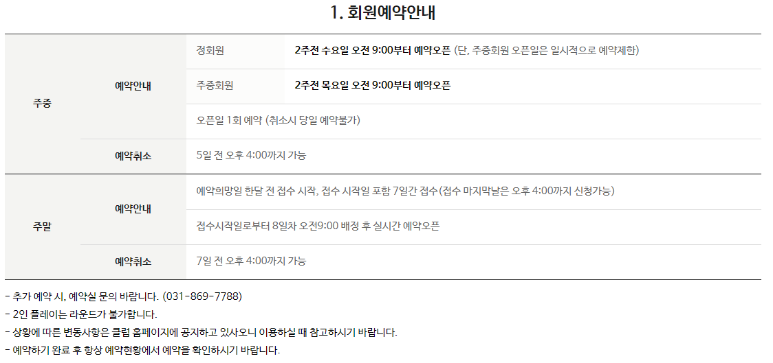 | 캐디시스템 | 1캐디 4백 |