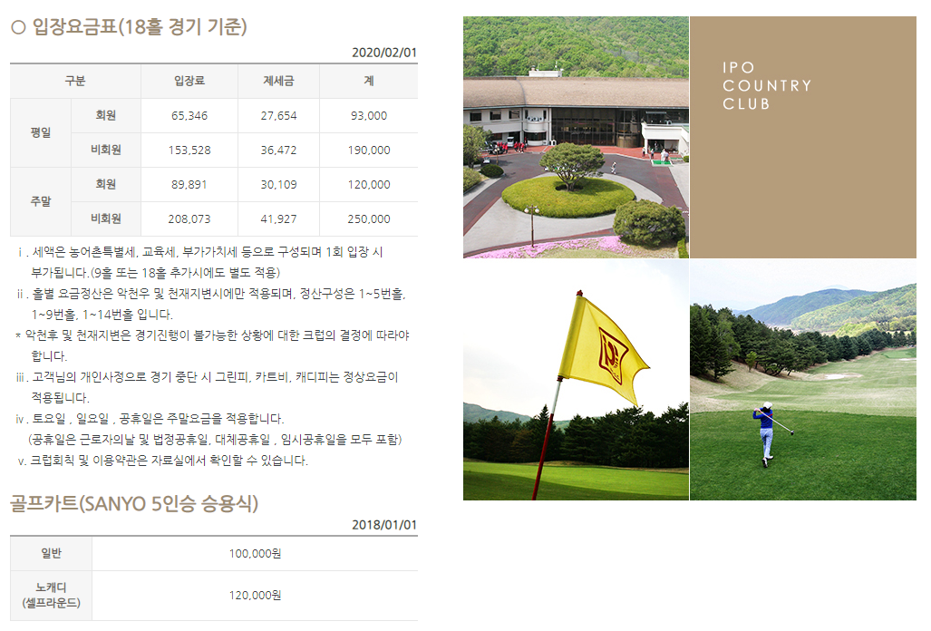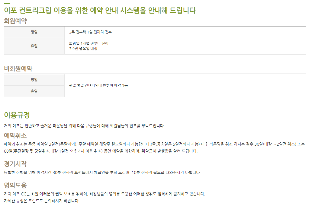 ♣ 이포cc 이용요금 및 예약 안내 ♣