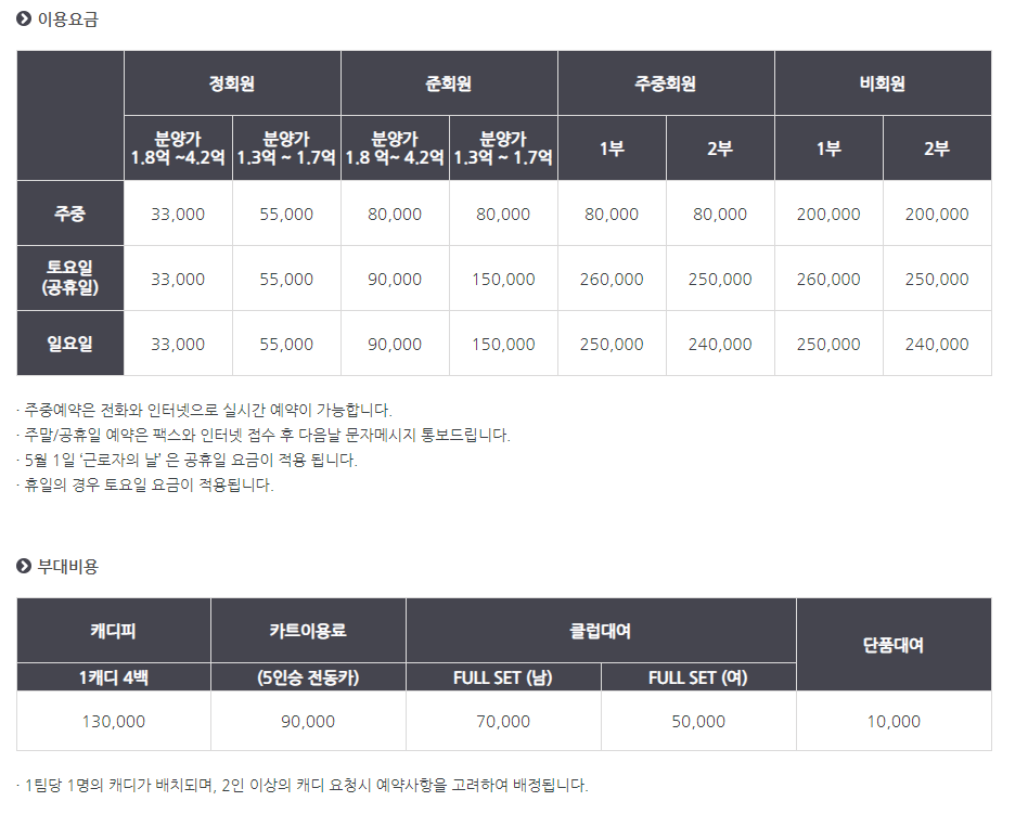 ▣ 서원밸리cc 이용요금 및 예약 안내