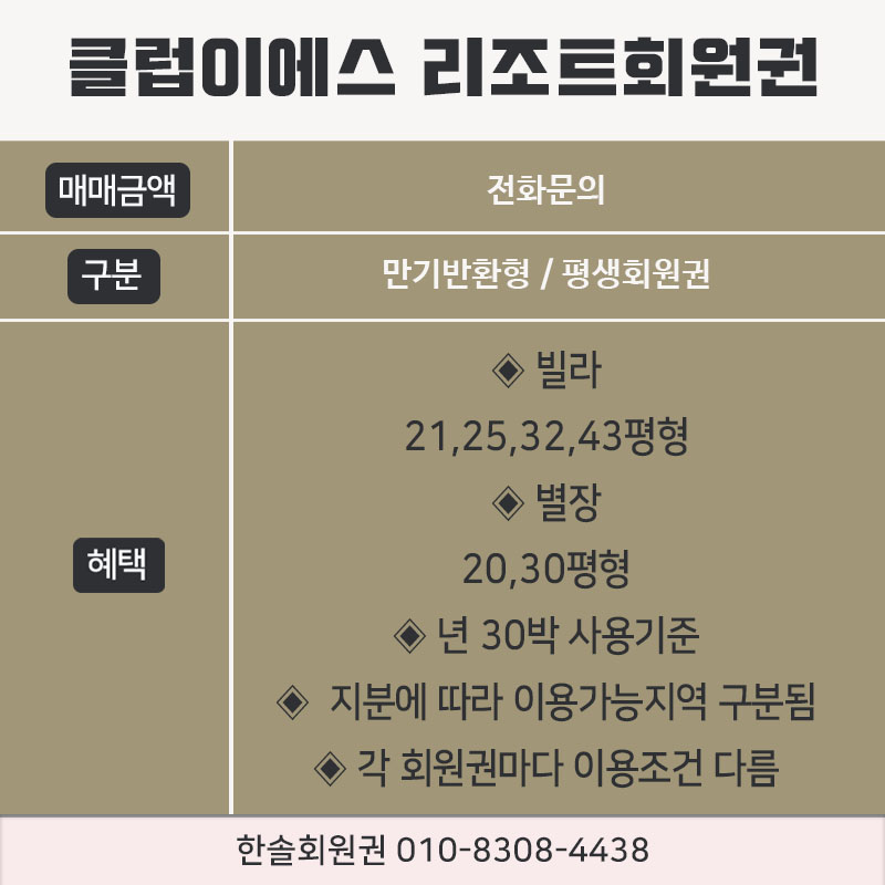 다르기 때문에 반드시 거래전 확인을 하시는 것이 필수입니다. 클럽이에스리조트의 자세한