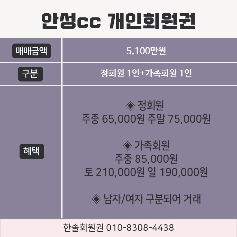 안성cc의 회원권은 개인회원권으로 정회원 1인과