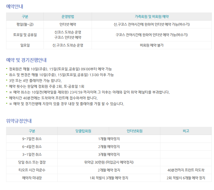 ◐ 한양cc 이용요금 및 예약 안내