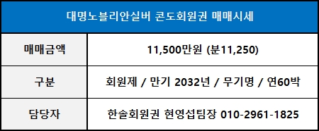 대명노블리안실버 콘도회원권 추천매물 매매시세 (2021.01.04.) 안내