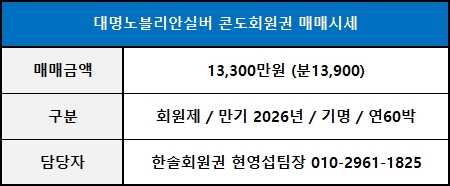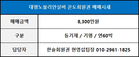 대명노블리안실버 콘도회원권 추천매물 매매시세 (2021.01.04.) 안내