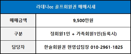 ☞ 라데나cc 개인회원권은 연회비(66만원)납부시 가족회원1인(1년간)을 등록할 수 있습니다.