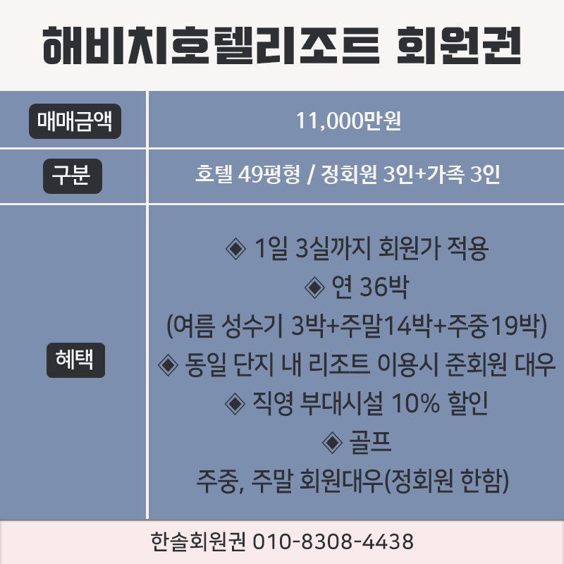 ■ 해비치호텔리조트 회원권 혜택과 정보 안내드립니다. ■