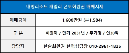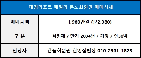 ◀ 대명콘도회원권 패밀리 매매가격 ▶