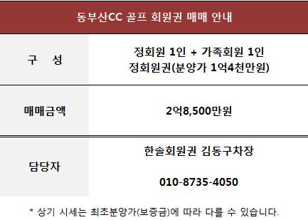 동부산CC 골프 회원권 매매 안내
