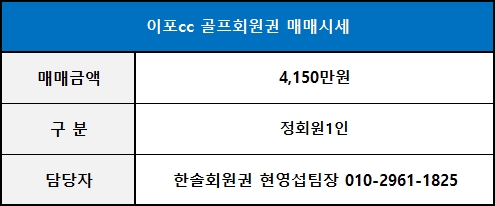 이포컨트리클럽 이포cc 골프회원권 추천매물 매매시세 (2021.01.08.) 안내