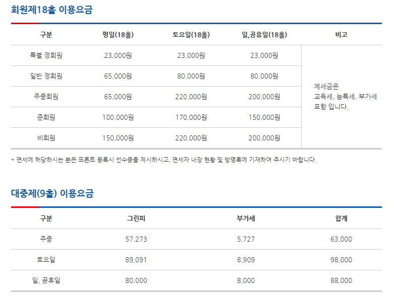 ◆ 금강cc 이용요금 및 예약 안내