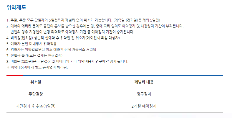 가족(타인)회원 : 주중 100,000원, 토요일 170,000원, 일요일 150,000원
