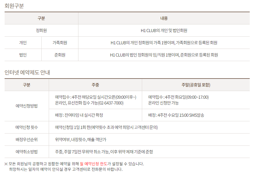 ◈ 에이치원cc 이용요금 및 예약 안내 ◈