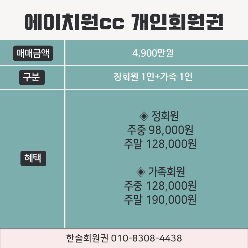 편안한 즐거움과 휴식을 즐길 수 있습니다. 그렇다면 에이치원cc의 회원권과