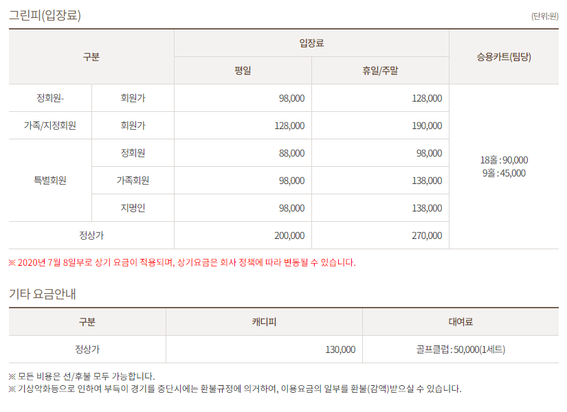 ◈ 에이치원cc 이용요금 및 예약 안내 ◈