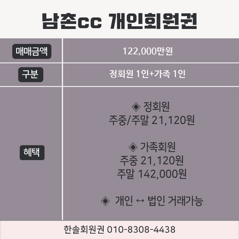 남촌cc의 회원권은 개인회원권으로 정회원 1인과