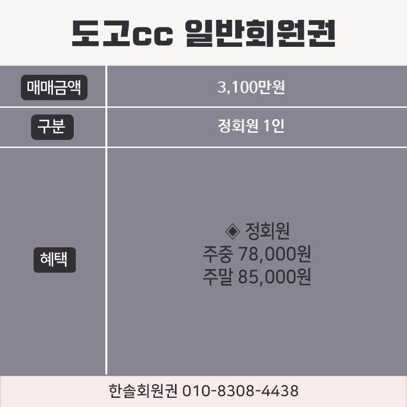 도고cc의 회원권은 개인회원권으로 정회원 1인으로 구성되어 있는