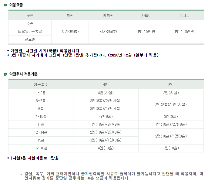 ◆ 도고cc 이용요금 및 예약 안내 ◆