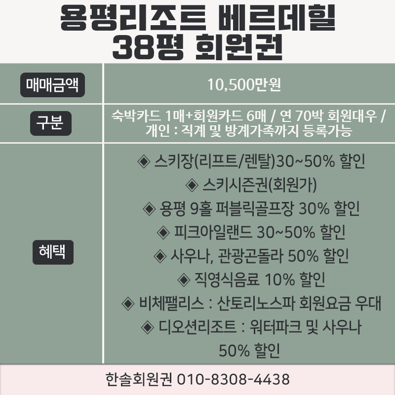 ◆ 용평베르데힐리조트 회원권 혜택과 정보 안내드립니다. ◆