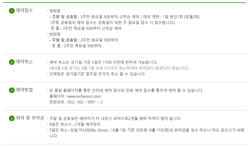 ◈ 인천국제cc 이용요금 및 예약 안내 ◈