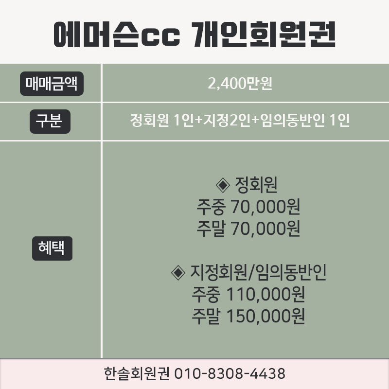 에머슨cc의 회원권은 개인회원권으로 정회원 1인과 지정회원 2인, 임의동반인 1인