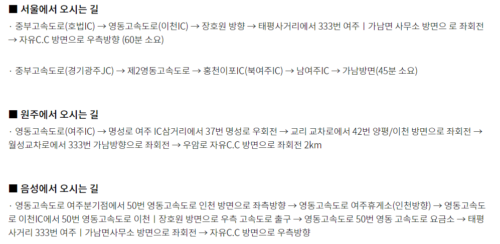 주소 : 경기도 여주시 가남읍 자유그린길 69