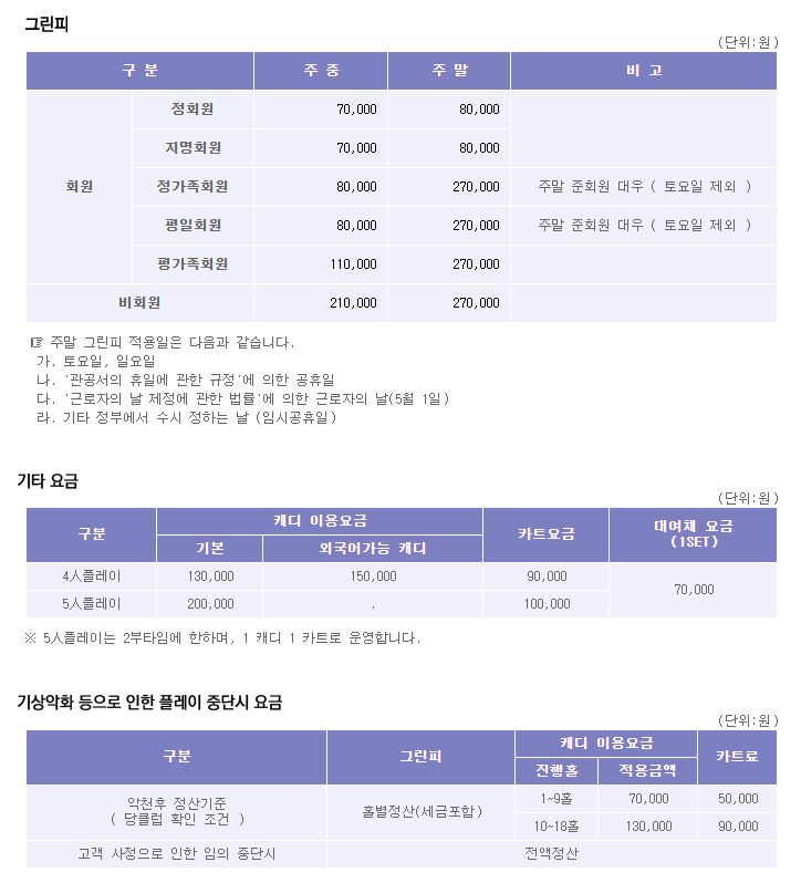 ◆ 아시아나cc 이용요금 안내 ◆
