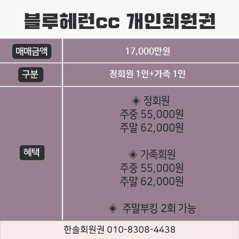 블루헤런cc의 회원권은 개인회원권으로 정회원 1인과 가족회원 1인으로