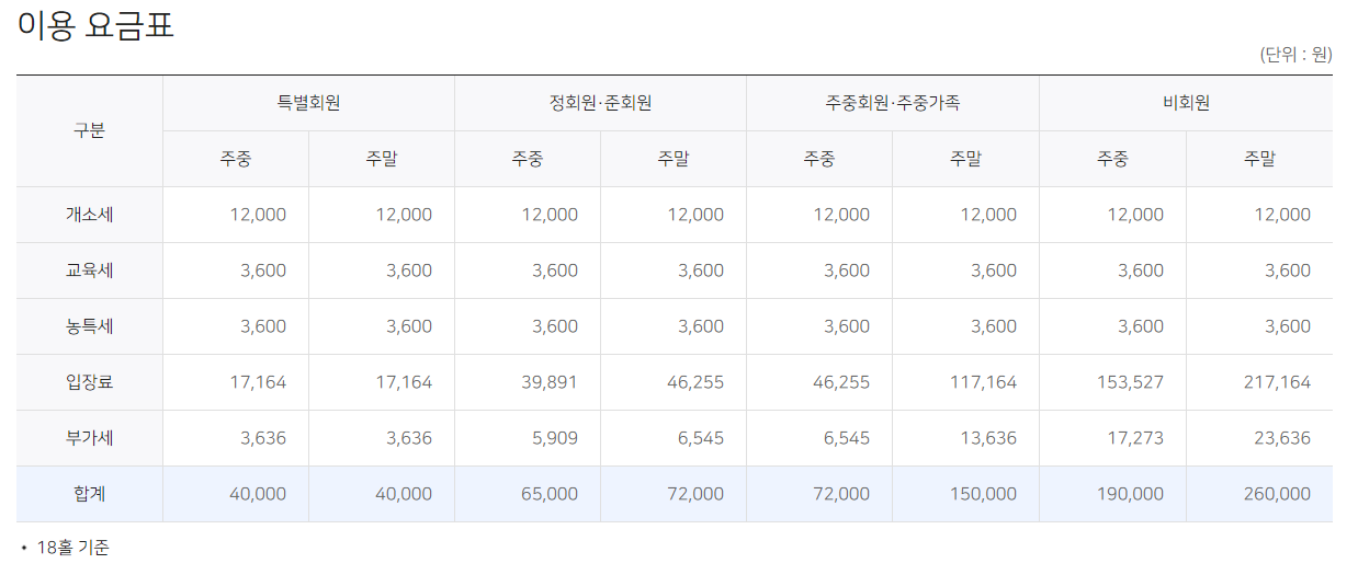 구성되어 있습니다. 주중 부킹이 2회가 가능하다는 특징이 있는 회원권으로 개인과